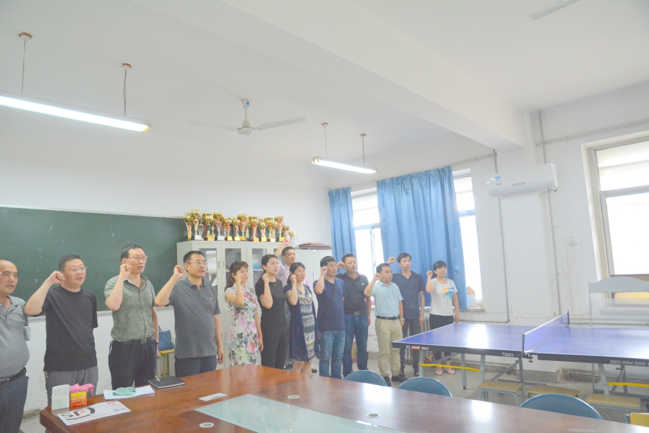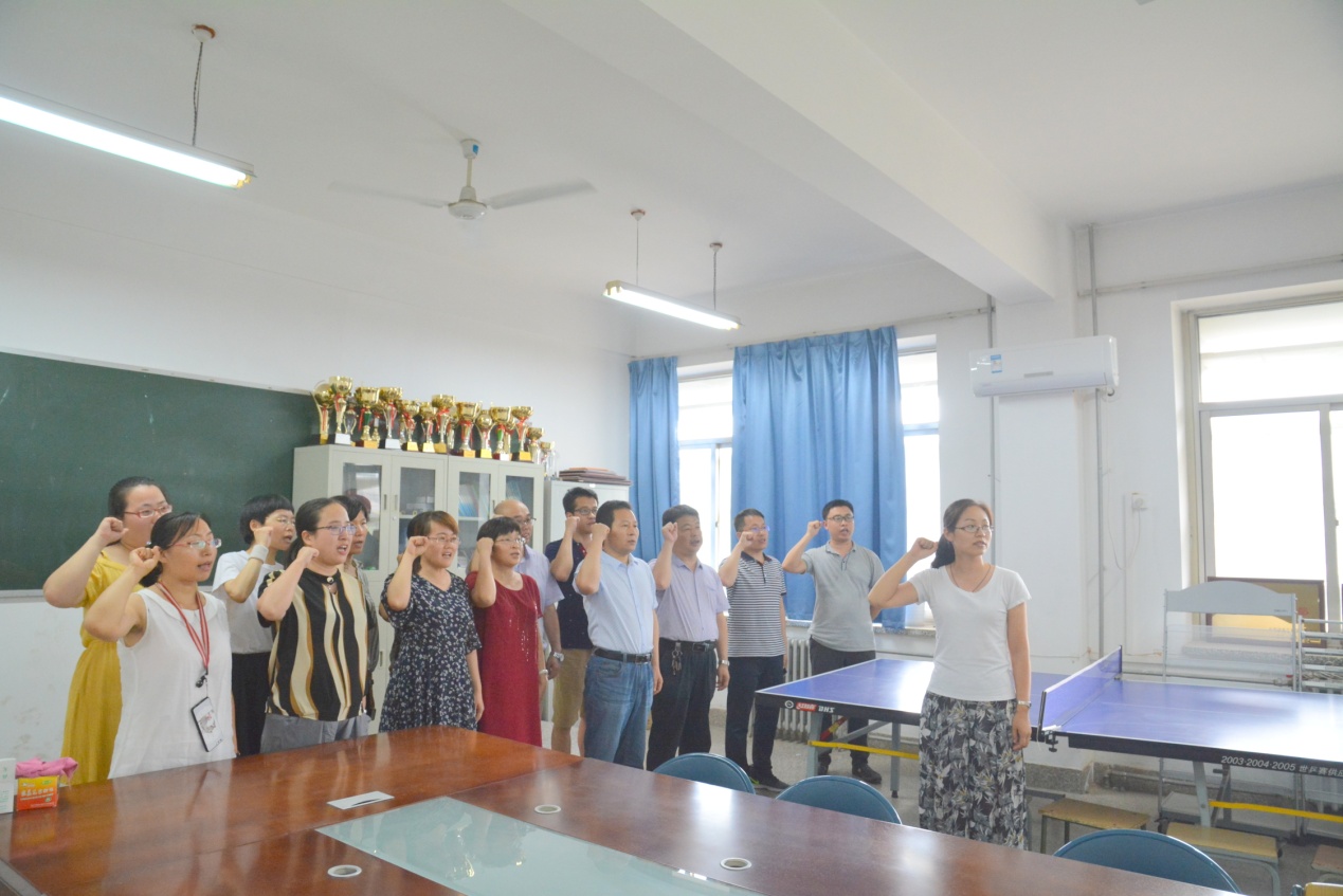 学习培训后,学院全体教工党员在支部书记的带领下,面向党旗,进行庄严宣誓,重温入党誓词。通过这次活动,广大党员心灵上受到了洗礼,思想上得到升华。大家纷纷表示,要时刻牢记自己是一名共产党员,做到不忘初心、牢记使命,认真学习贯彻党的十九大精神和和习近平新时代中国特色社会主义思想,做敢于担当奉献的合格党员,为学院的改革发展贡献力量。